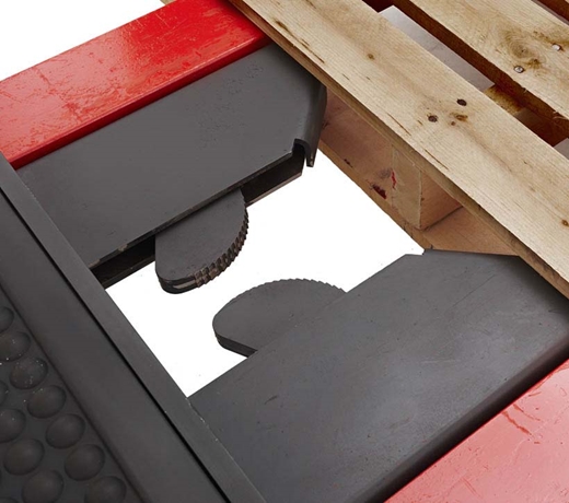 Para mejorar la productividad, nuestra abrazadera especial para tarimas con autobloqueo acomoda tablones que van desde 1.25 “a 5”. Por lo tanto, sus operaciones pueden manejar prácticamente cualquier tarima en el almacén.