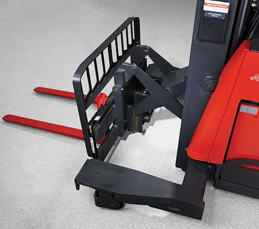 Maneje fácilmente cargas largas y flexibles que requieren soporte adicional con el carro de horquilla auxiliar opcional, disponible en anchos de 8,5 a 15 pies en total.