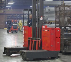 Con el robusto y confiable Sideloader Raymond 9300, puede mover fácilmente materiales largos y voluminosos de hasta 6.000 libras en pasillos estrechos de almacenamiento y áreas estrechamente confinadas. Los montacargas de carga larga Raymond Sideloader proporcionan una maniobrabilidad superior que permite a los operadores mover con mayor facilidad cargas largas y voluminosas, como barras, tubos, laminados y láminas de madera contrachapada, y apilarlas hasta 30 pies de altura.
